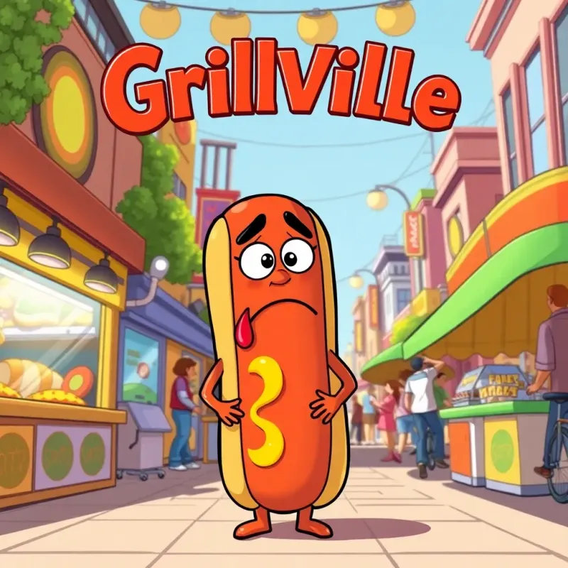 Join Frankie the Hot Dog on a thrilling adventure as he searches for his beloved Chef Benny through the lively town of Grillville!