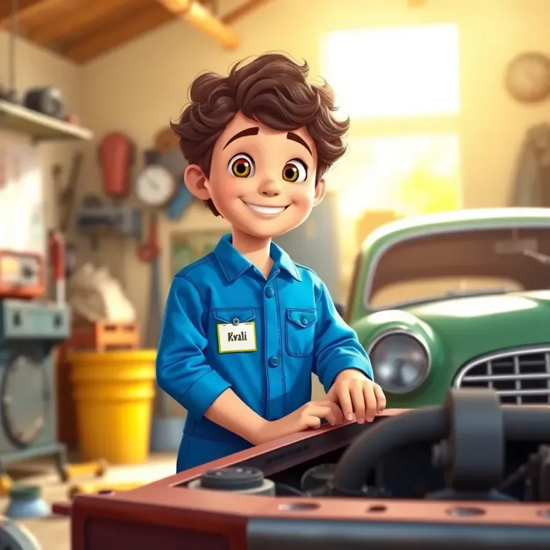 Join Kvali, a cheerful mechanic with dreams of becoming an engineer, as he finds joy in fixing toys and cars, spreading happiness everywhere!