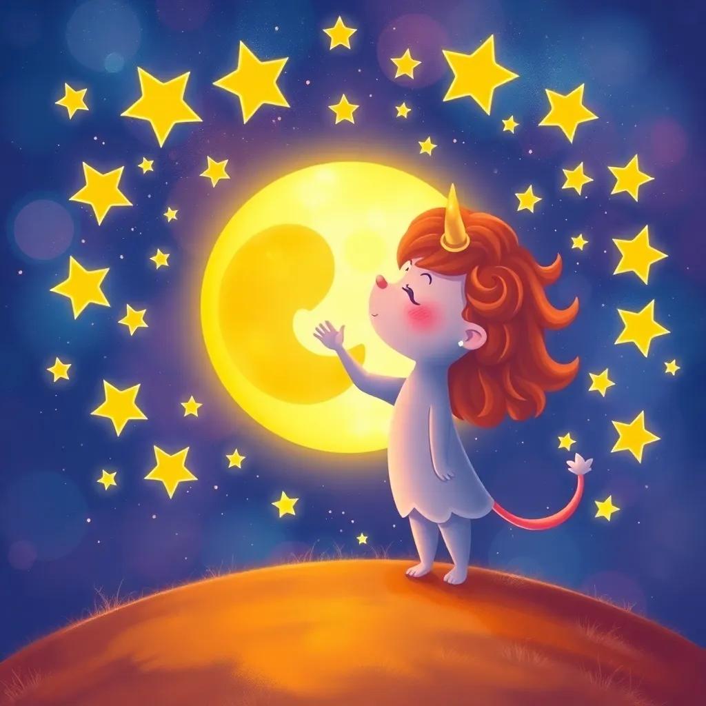 "Look at the stars, Leo!" said Luna, a young girl with bright eyes and curly hair. They sat on a grassy hill, watching twinkling lights in the night sky. "I wish we could fly among them!" Leo, her fluffy, brown dog, wagged his tail excitedly, as if he understood her dream.