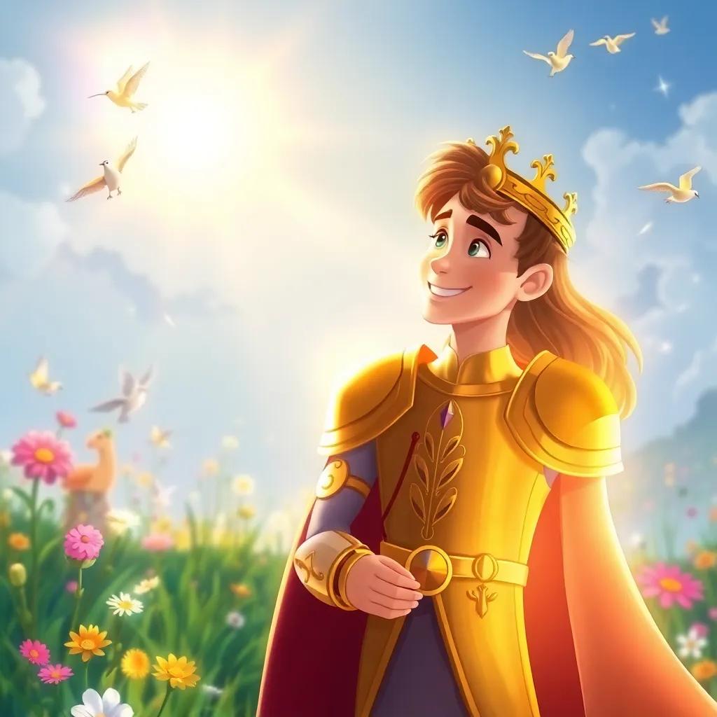 In a flash of bright light, the frog changed his form! The princess was amazed, it was a magical storm! Before her stood a prince, dressed in gold, with a charming smile and a heart of pure gold. "Thank you, dear princess, for the kindness you showed. Our friendship will blossom, like a beautiful rose!"