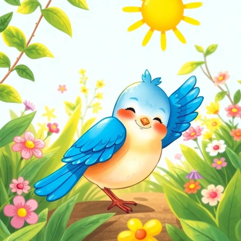 Timmy was thrilled! He wanted to sing too. So, he closed his eyes and began to sing. At first, he sang softly, but soon he sang louder. The bluebird flapped its wings and twirled in the air. It felt like a happy dance! Timmy laughed and danced along with the bird, enjoying this fun moment.