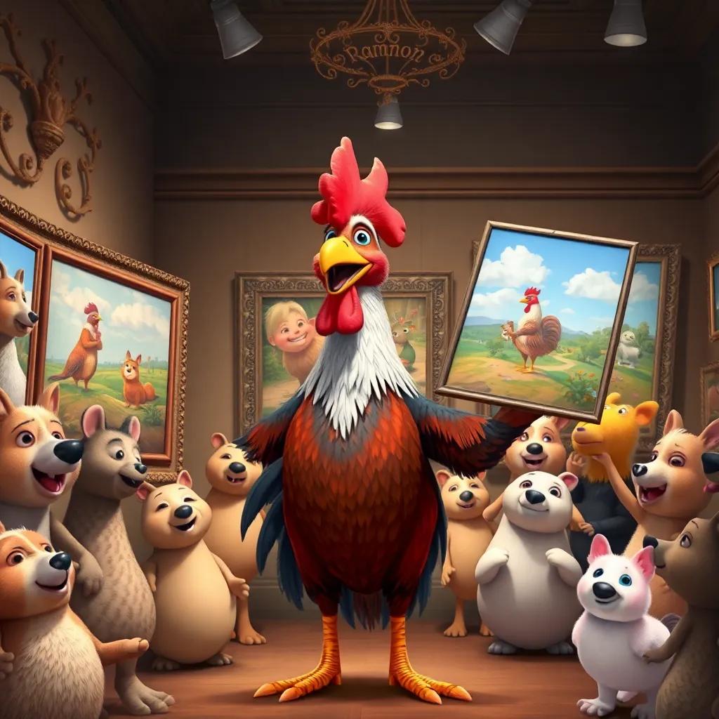 Desde ese día, Ramón el gallo pintor continuó creando arte para todos. Sus amigos contaron la historia de su gallo talentoso y colorido a todos.