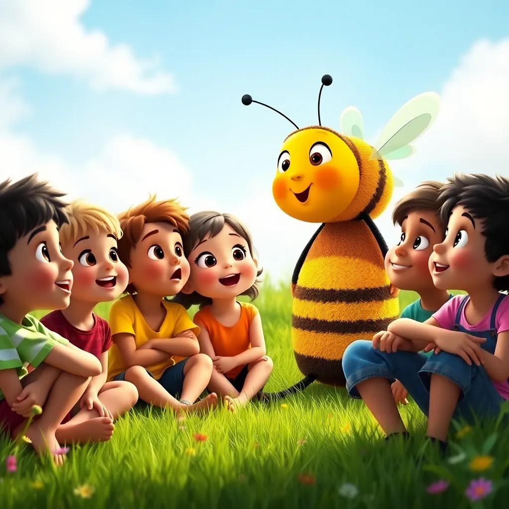 “¡Hola, niños!” zumbó Bella. “¿Quieren aprender sobre la miel y la amistad?” Los niños miraron asombrados a la pequeña abeja. “¡Sí!” gritaron con entusiasmo, esperando a escuchar su historia.